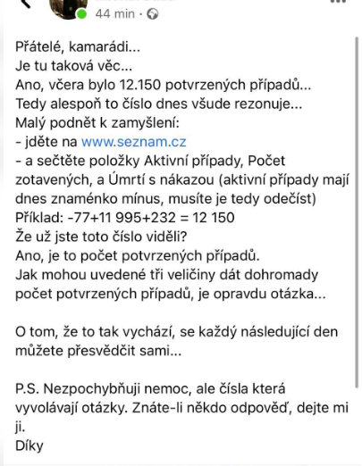 Celé nepochopení zpočívá v tom, že Aktivní případy v tabulce jsou DOPOČÍTÁNY z Potvrzených případů, Počtu zotavených a Úmrtí s nákazou.